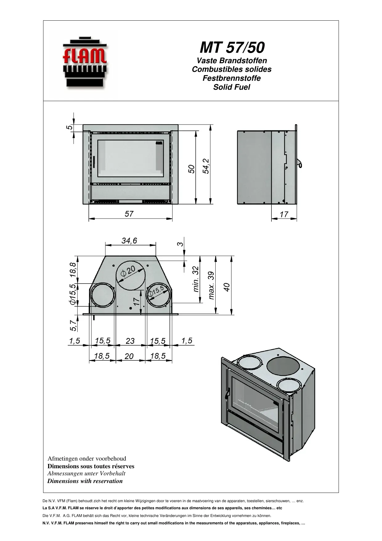 MT 57-50 - Cheminée insert FLAM - Notice d'utilisation et mode d'emploi gratuit