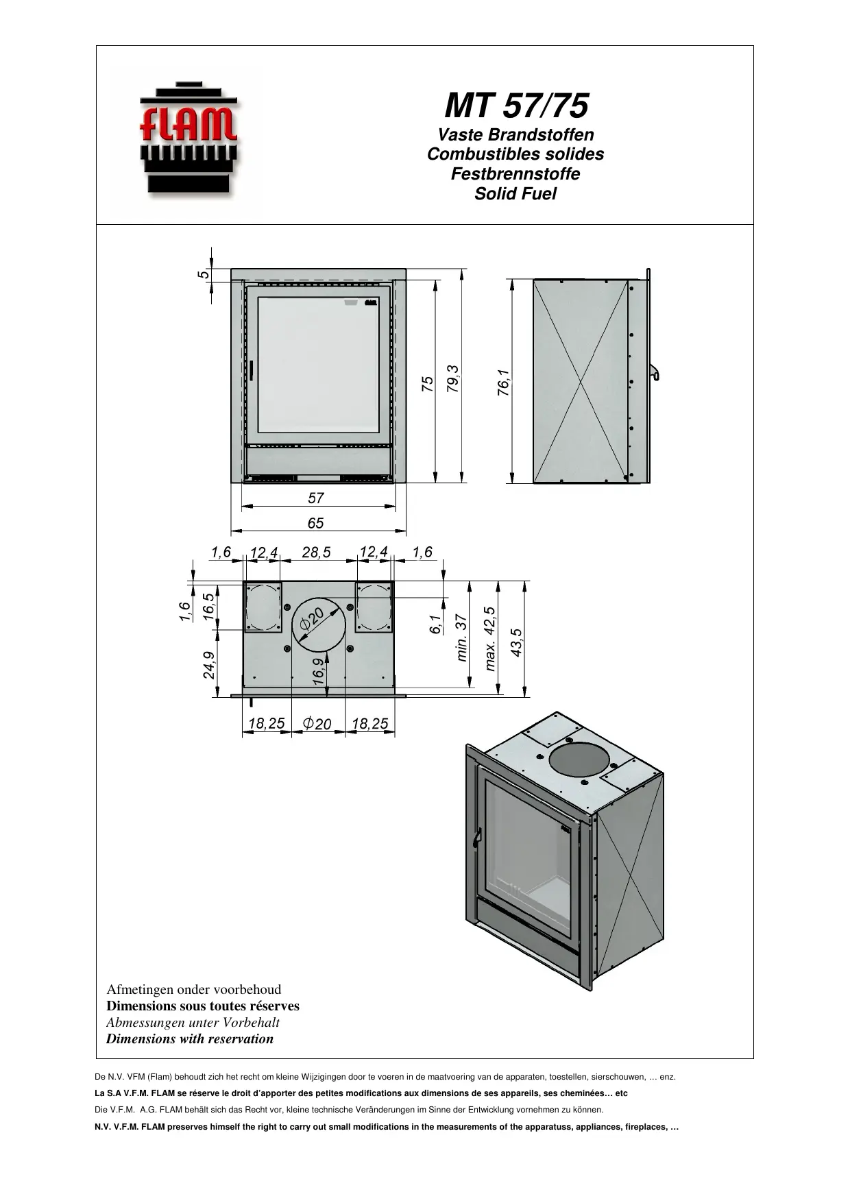 MT 57-75 - Poêle à bois FLAM - Notice d'utilisation et mode d'emploi gratuit