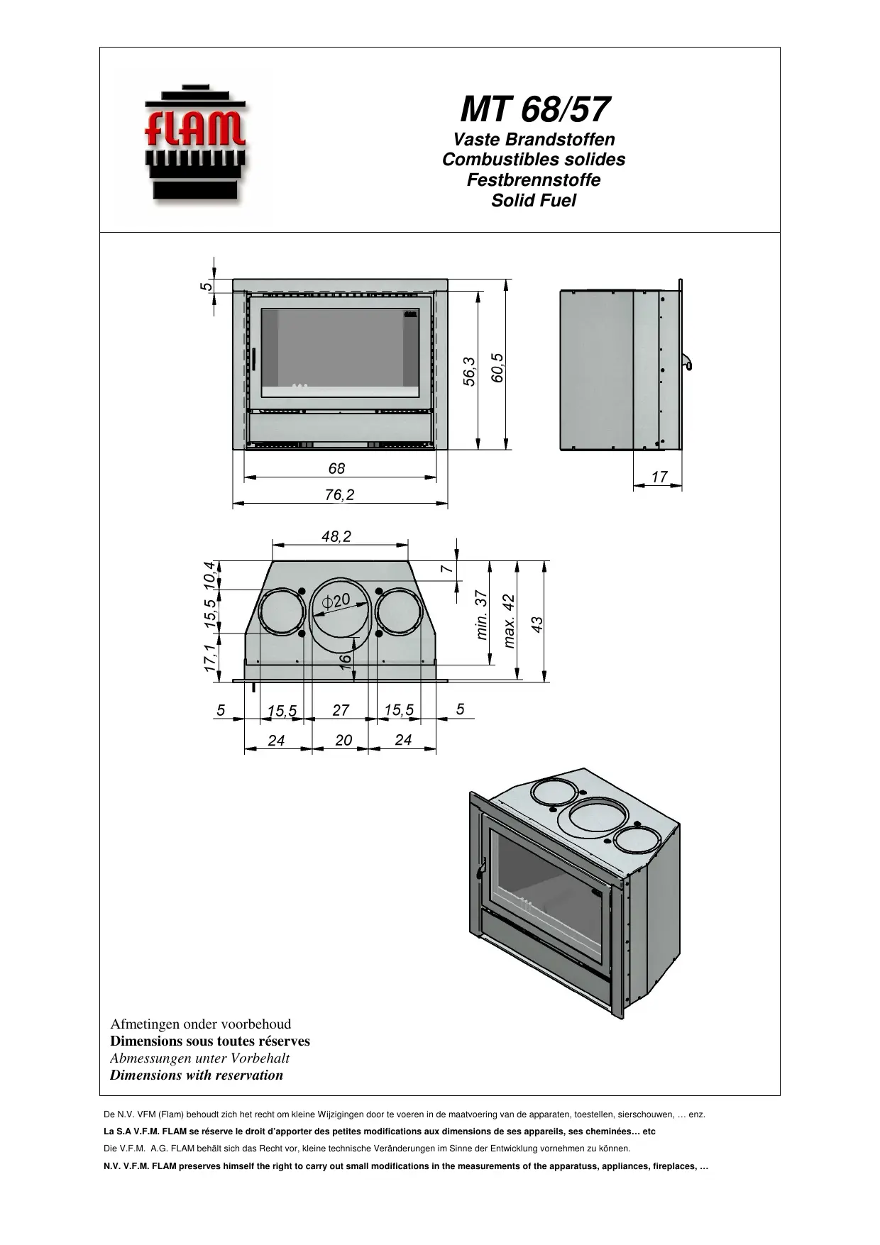 MT 68-57 - Cheminée insert FLAM - Notice d'utilisation et mode d'emploi gratuit