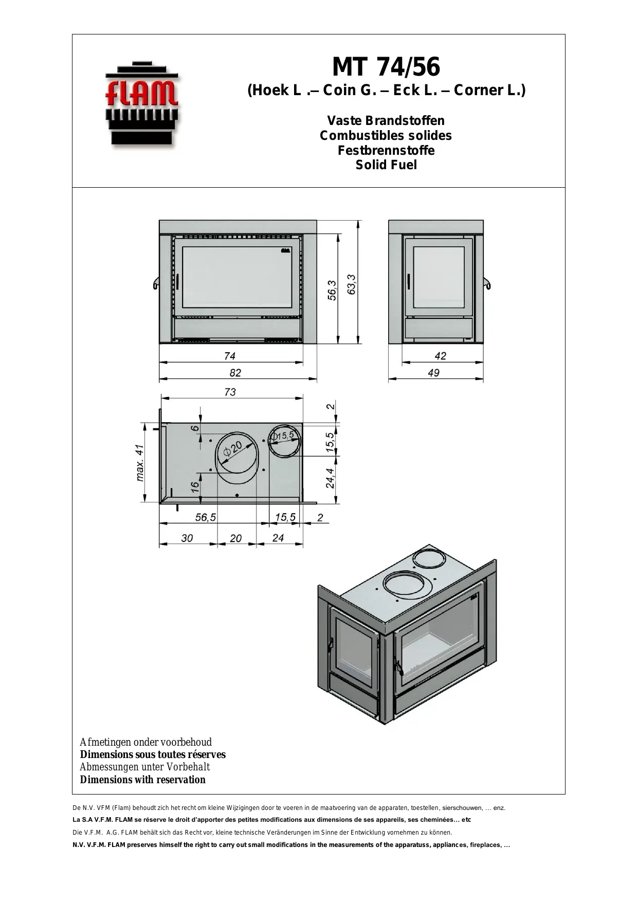 MT 74-56 - Cheminée insert FLAM - Notice d'utilisation et mode d'emploi gratuit
