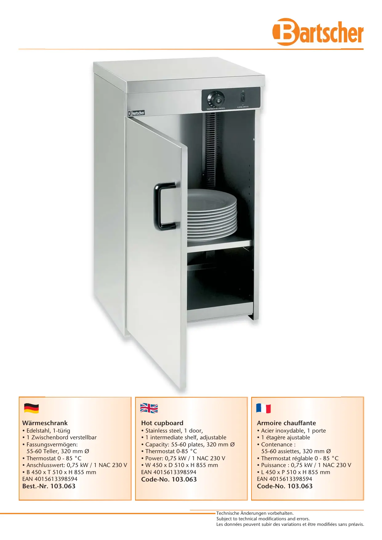 Retrouvez gratuitement la notice de l'appareil 103063-043 BARTSCHER au format PDF.