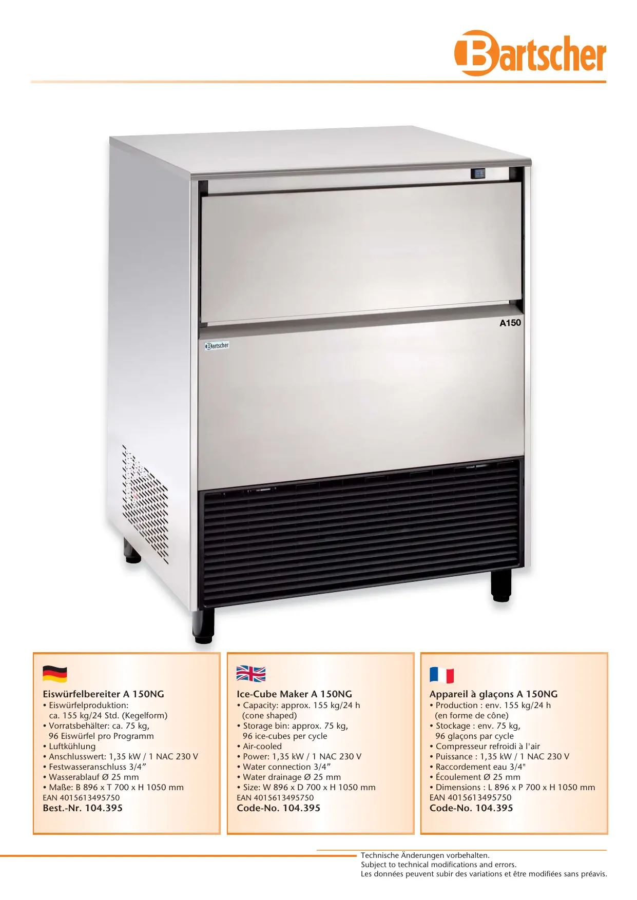 104395 - Machine à glaçons BARTSCHER - Notice d'utilisation et mode d'emploi gratuit