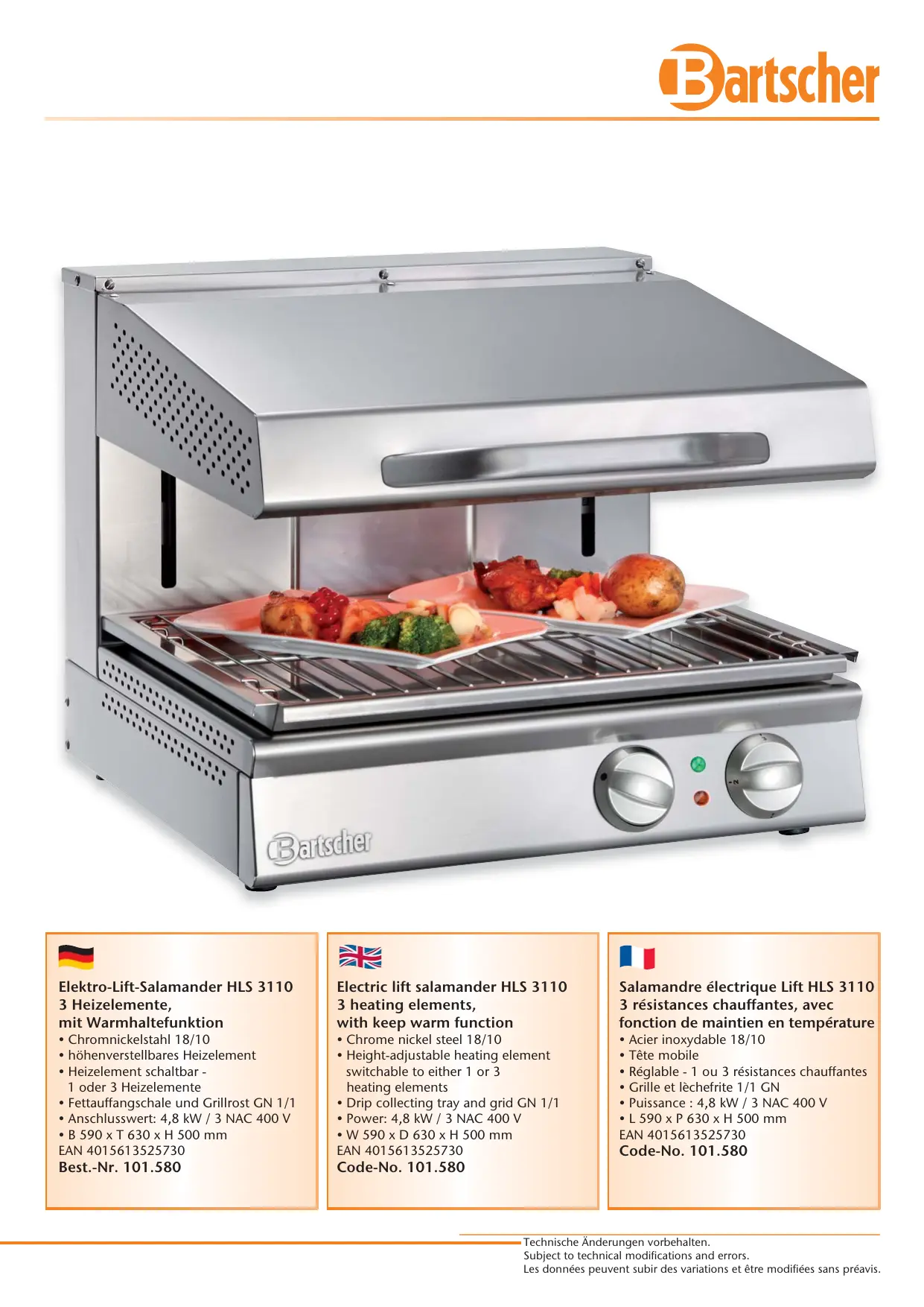 101.580 - DATASHEET - Grill électrique BARTSCHER - Notice d'utilisation et mode d'emploi gratuit
