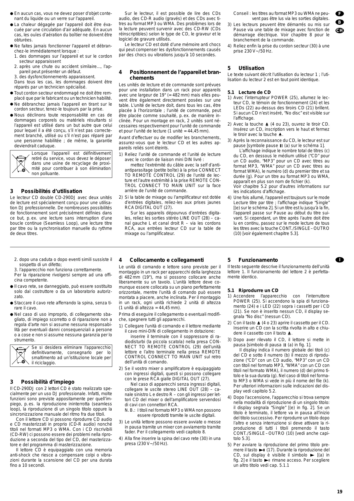 4 Positionnement de l'appareil et branchements 19