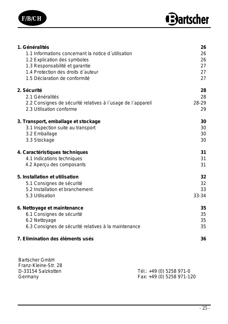Retrouvez gratuitement la notice de l'appareil A151.600 BARTSCHER au format PDF.