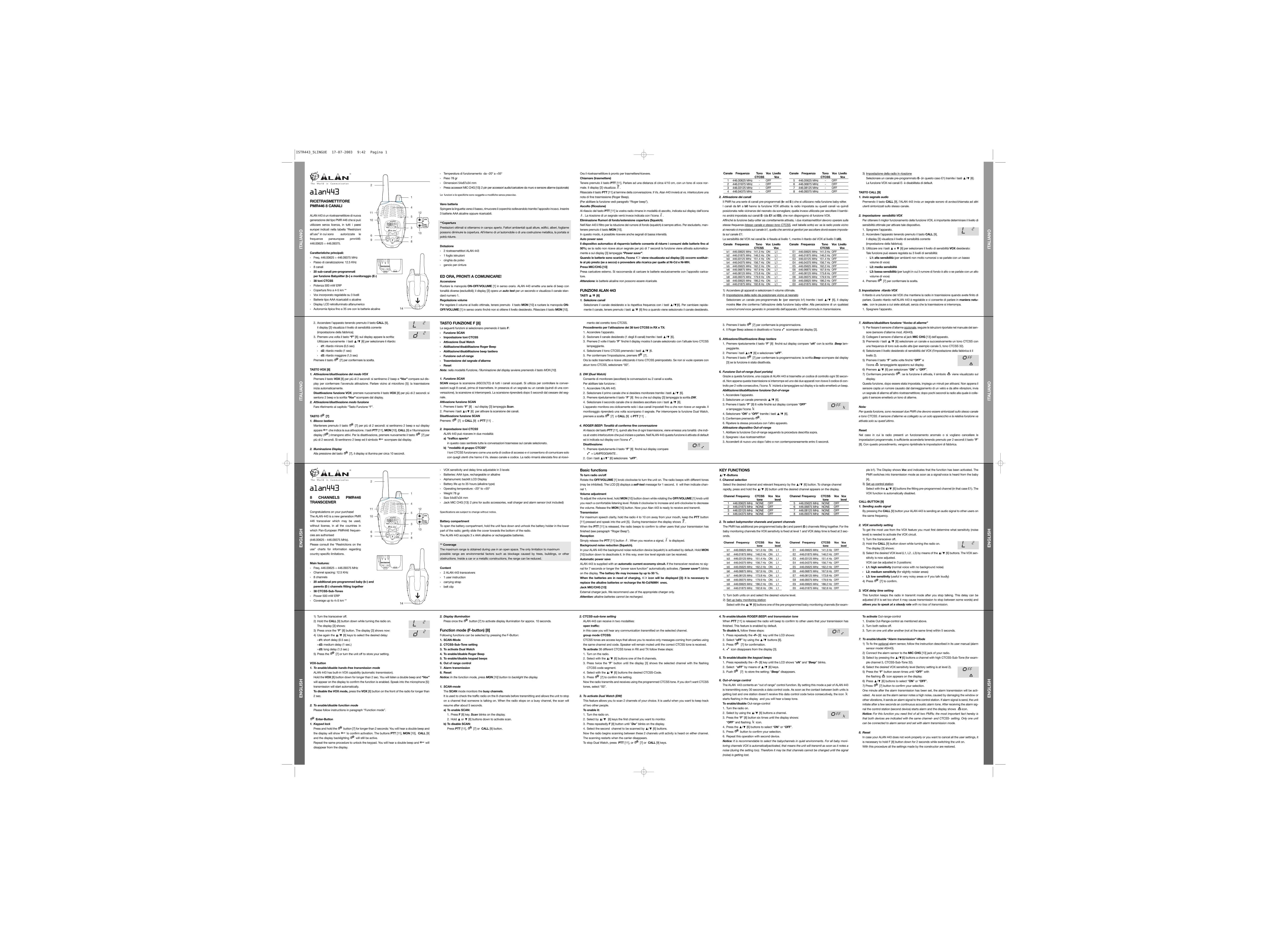 Avec ALAN 443 ce retard est réglable et cela vous permet de parler de façon naturelle, › Réglage tons CTCSS Pour débloquer le clavier, appuyez encore sur la touche 446.00625 MHz 446.01875 MHz 446.03125 MHz 446.04375 MHz 446.05625 MHz 446.06875 MHz 446.08125 MHz 446.09375 MHz 446.00625 MHz 446.01875 MHz