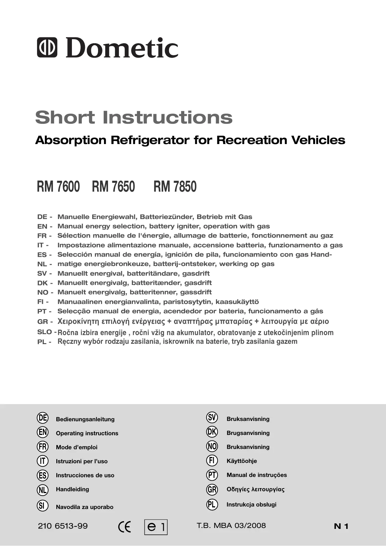 Retrouvez gratuitement la notice de l'appareil RM 7600 DOMETIC au format PDF.