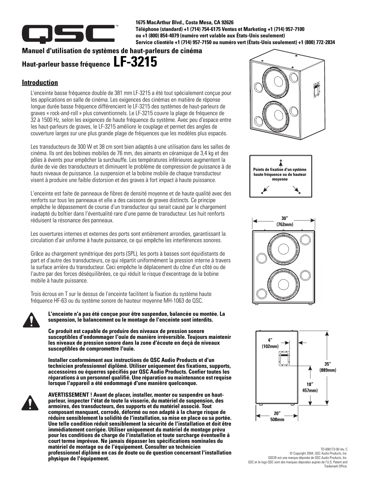 TD-000173-00 rév. C © Copyright 2004, QSC Audio Products, Inc. QSC® est une marque déposée de QSC Audio Products, Inc. QSC et le logo QSC sont des marques déposées auprès de l'U.S. Patent and Trademark Office.