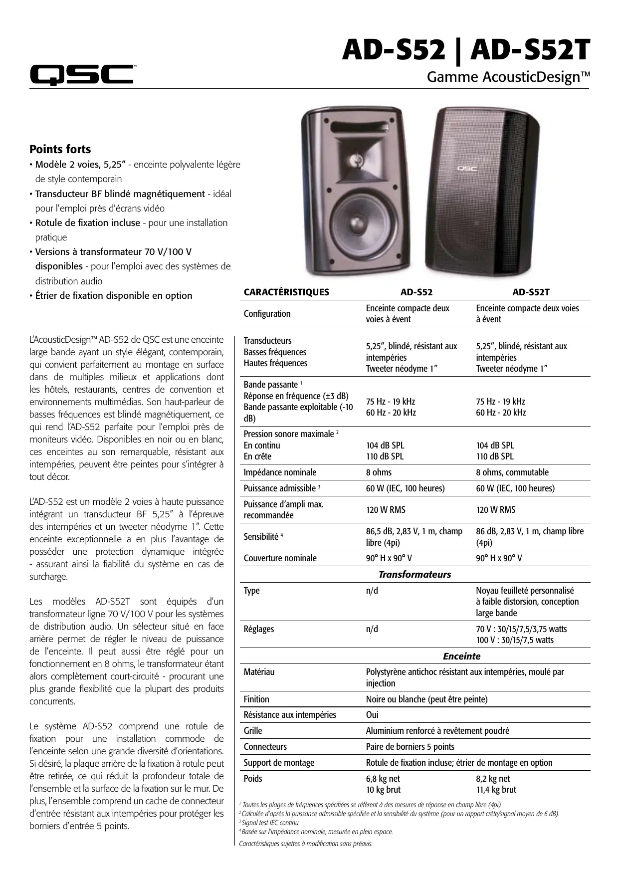 AD-S52T - Haut-parleur QSC AUDIO - Notice d'utilisation et mode d'emploi gratuit