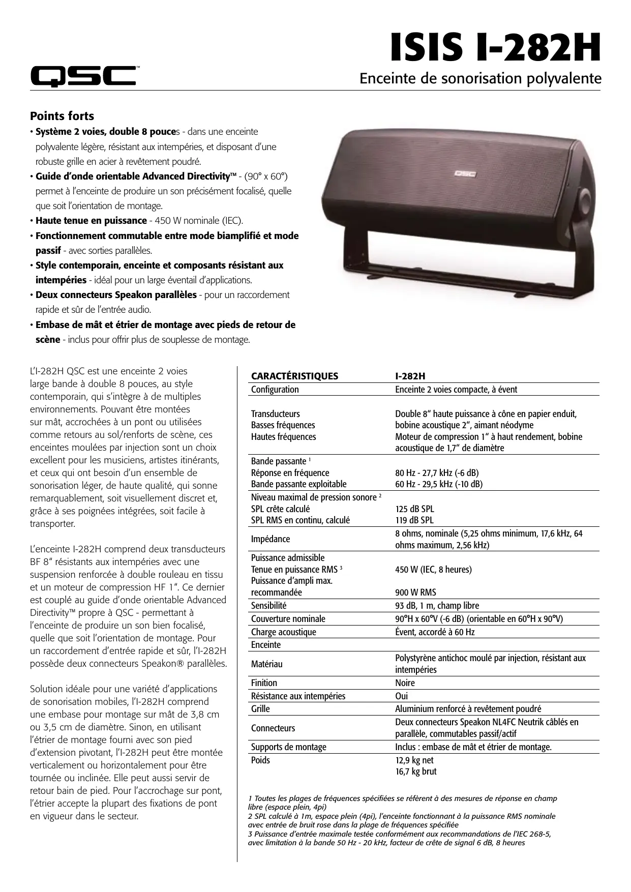 ISIS I-282H - Haut-parleur QSC AUDIO - Notice d'utilisation et mode d'emploi gratuit