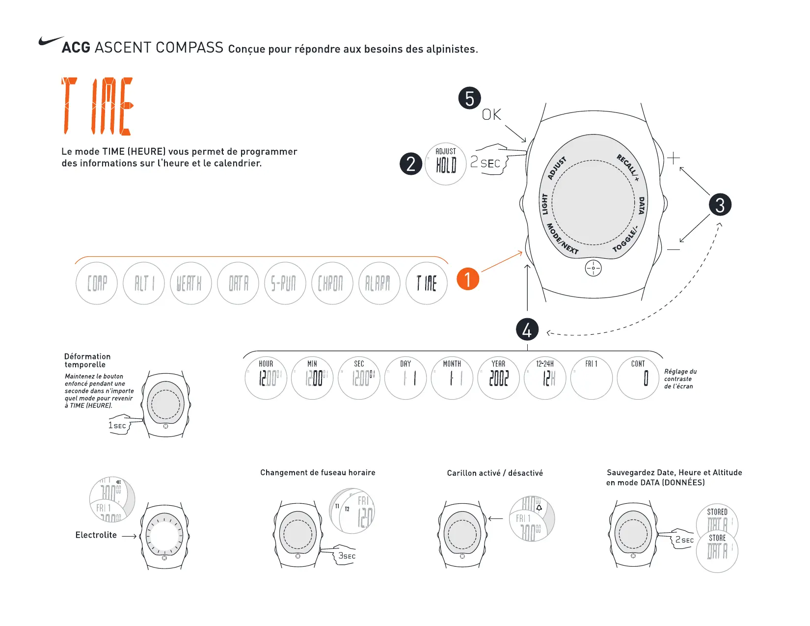 Le mode TIME (HEURE) vous permet de programmer des informations sur l'heure et le calendrier.