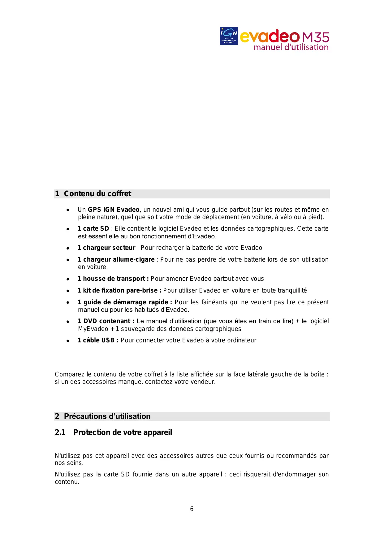 Retrouvez gratuitement la notice de l'appareil EVADEO M35 IGN au format PDF.
