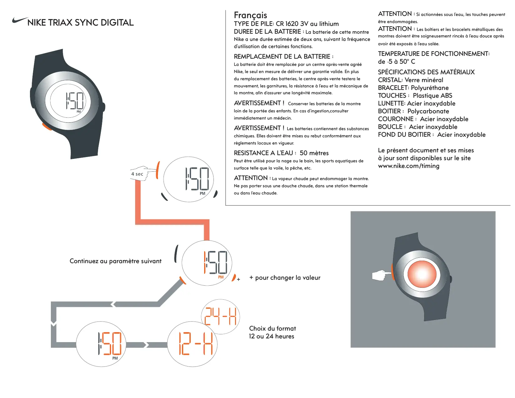 TRIAX SYNC DIGITAL - Montre numérique NIKE - Notice d'utilisation et mode d'emploi gratuit
