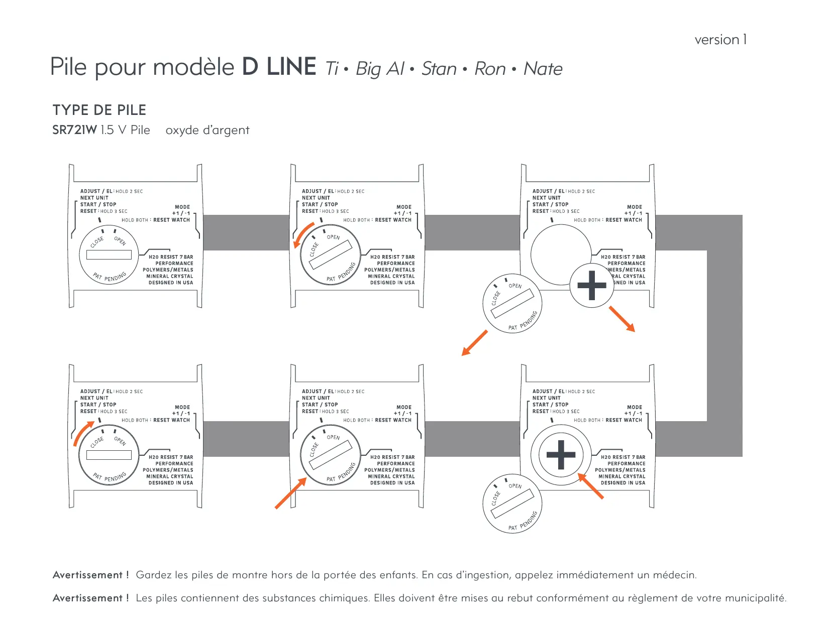 Avertissement ! Gardez les piles de montre hors de la portée des enfants. En cas d'ingestion, appepezlez immédiatement un medecin.
