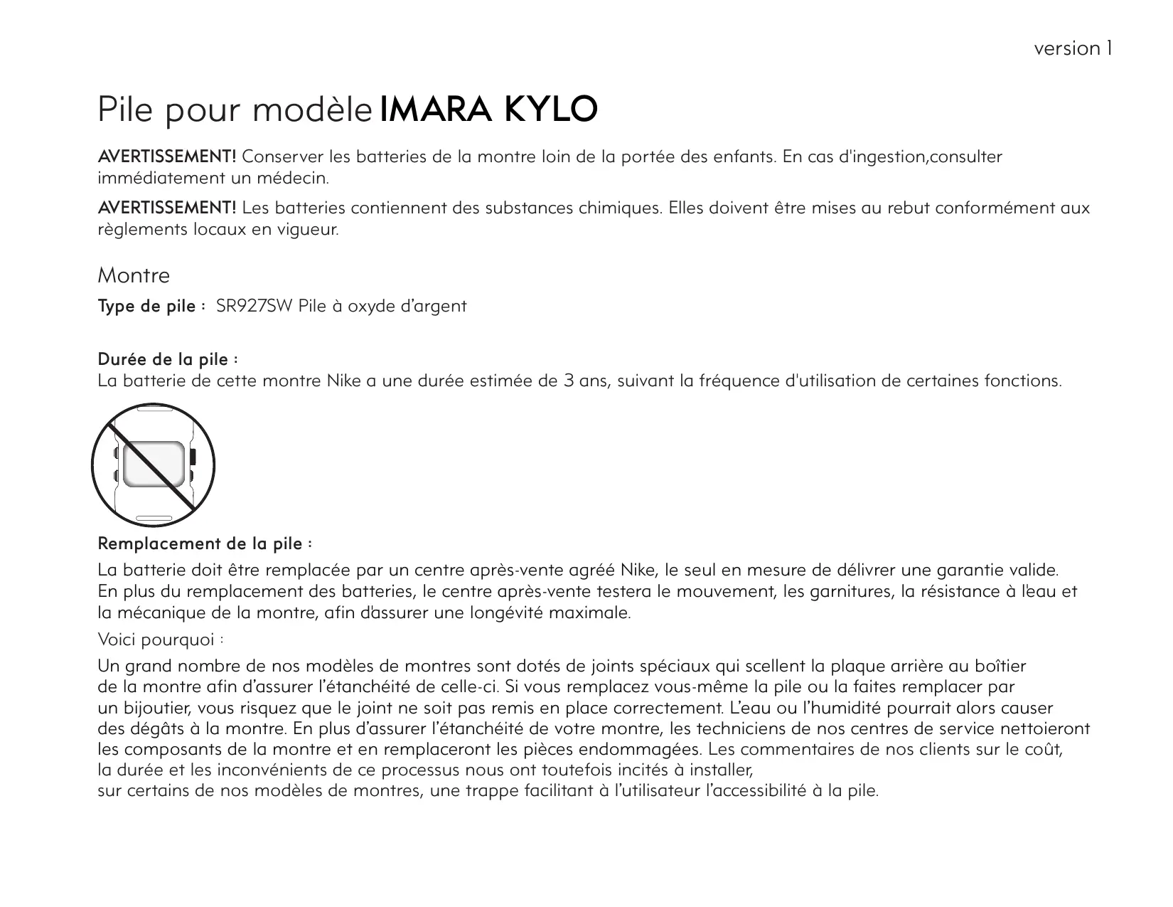 KYLO - Pile bouton NIKE - Notice d'utilisation et mode d'emploi gratuit