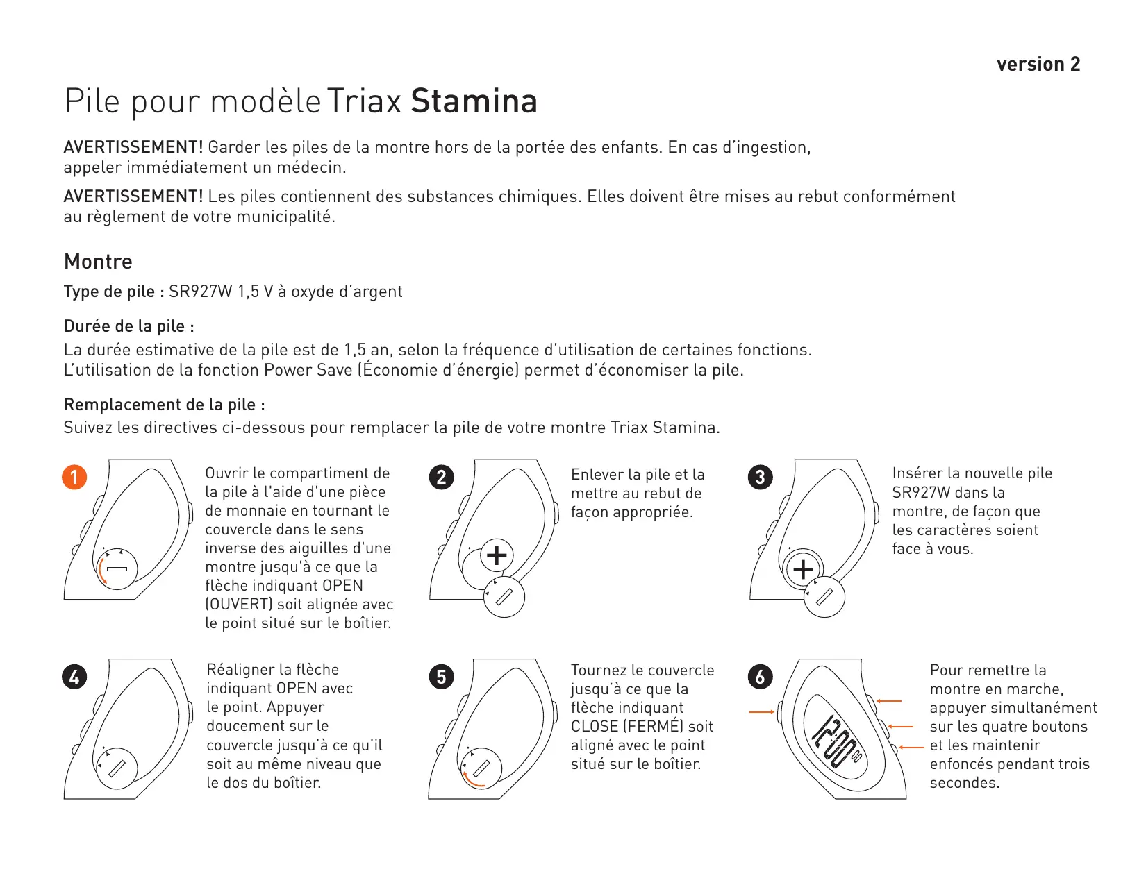 Suivez les directives ci-dessous pour remplacer la pile de votre montre Triax Stamina.