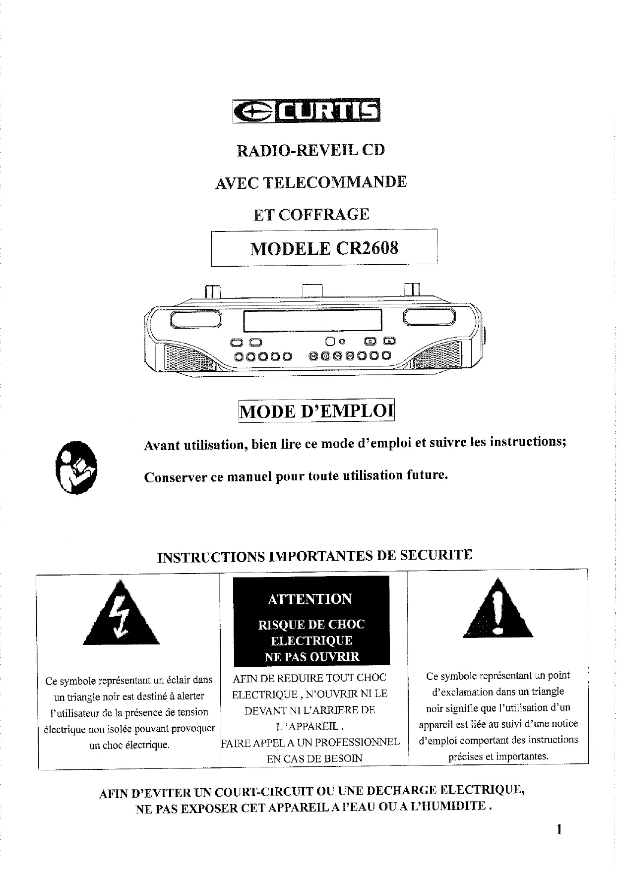 MODE D'EMPLOI CR2608 CURTIS
