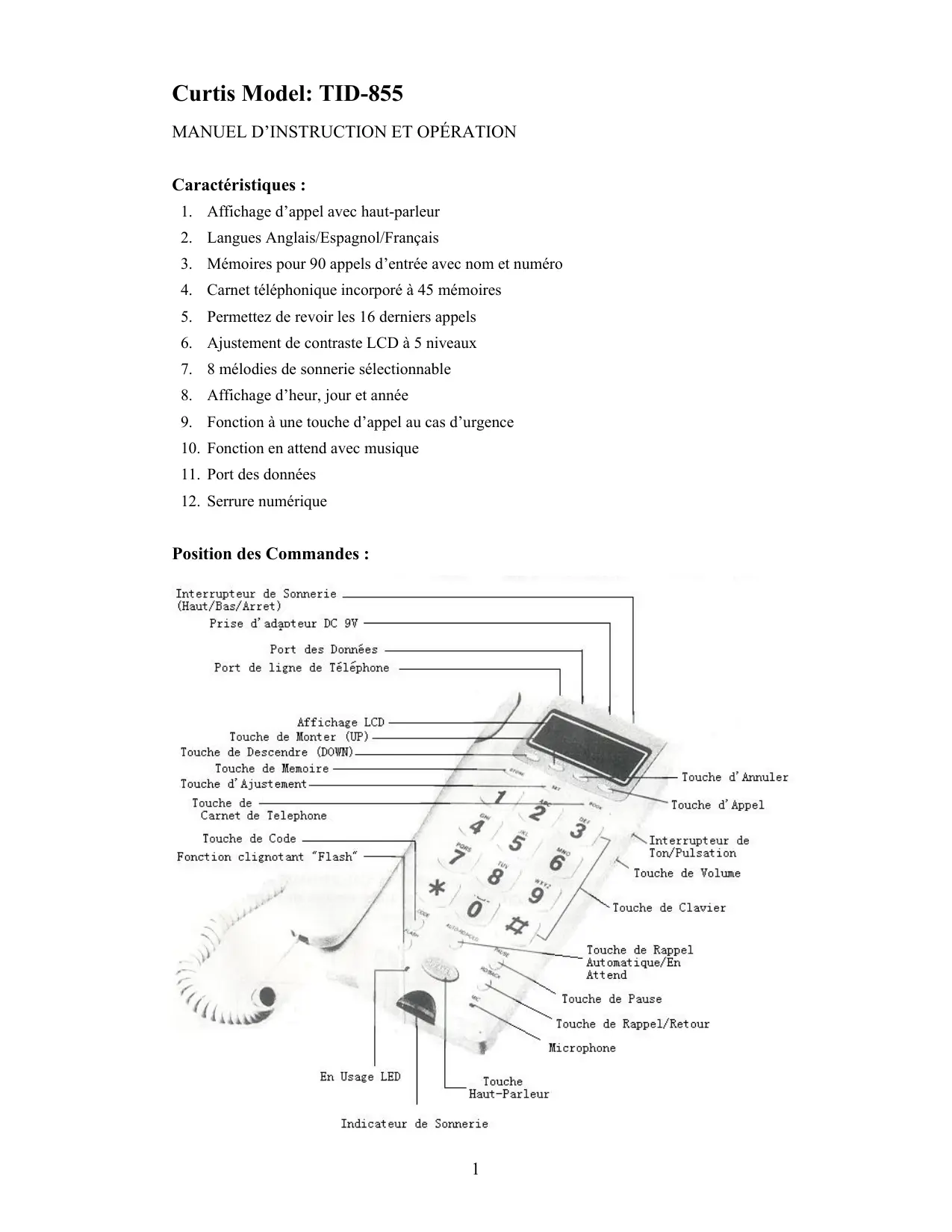 Téléchargez la notice de votre Téléphone fixe au format PDF gratuitement ! Retrouvez votre notice TID855 - CURTIS et reprennez votre appareil électronique en main. Sur cette page sont publiés tous les documents nécessaires à l'utilisation de votre appareil TID855 de la marque CURTIS.