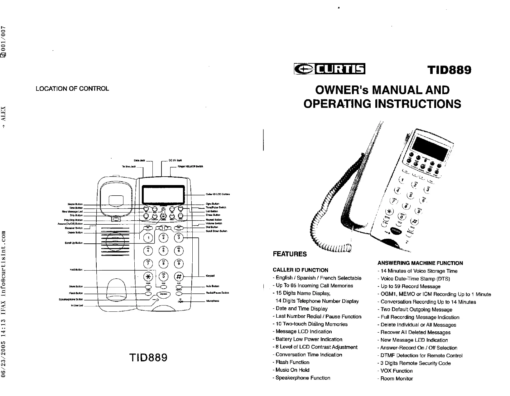 TID889 - Téléphone fixe CURTIS - Notice d'utilisation et mode d'emploi gratuit