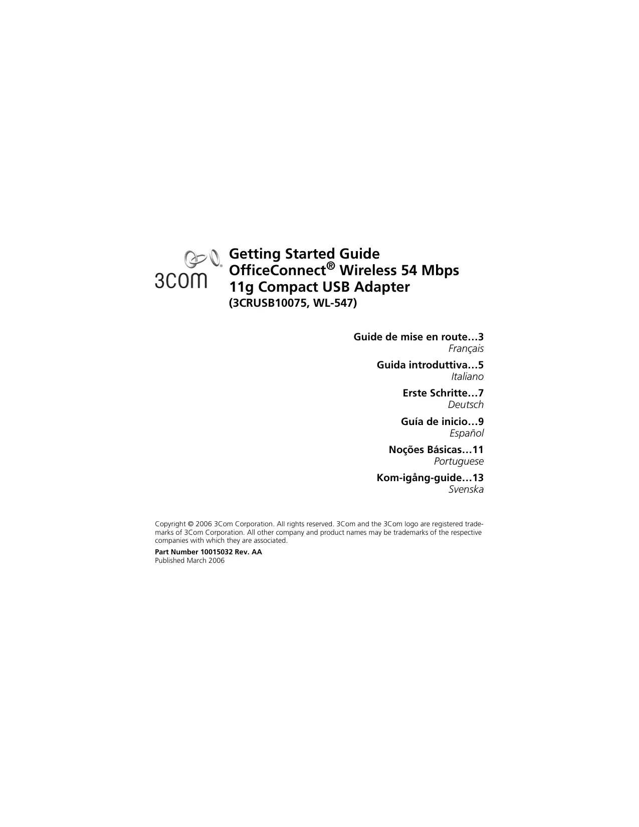 Retrouvez gratuitement la notice de l'appareil 3CRUSB10075 3COM au format PDF.