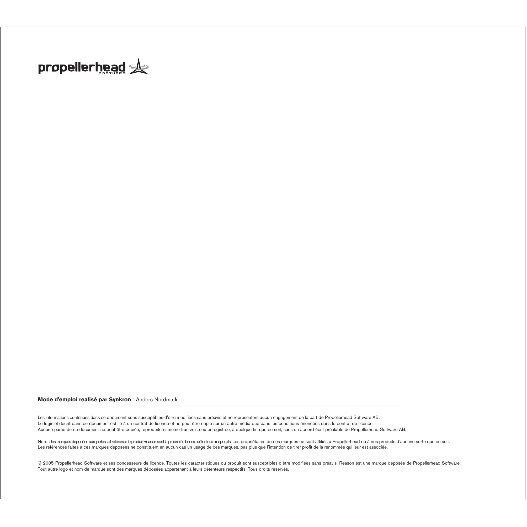 Les informations contenues dans ce document sons susceptibles d'être modifiées sans préavis et ne représentent aucun engagement de la part de Propellerhead Software AB.