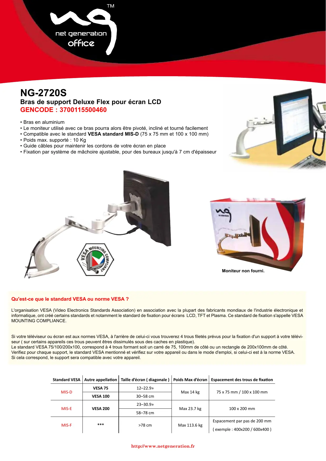 NG-2720S - Support d'écran NET GENERATION - Notice d'utilisation et mode d'emploi gratuit