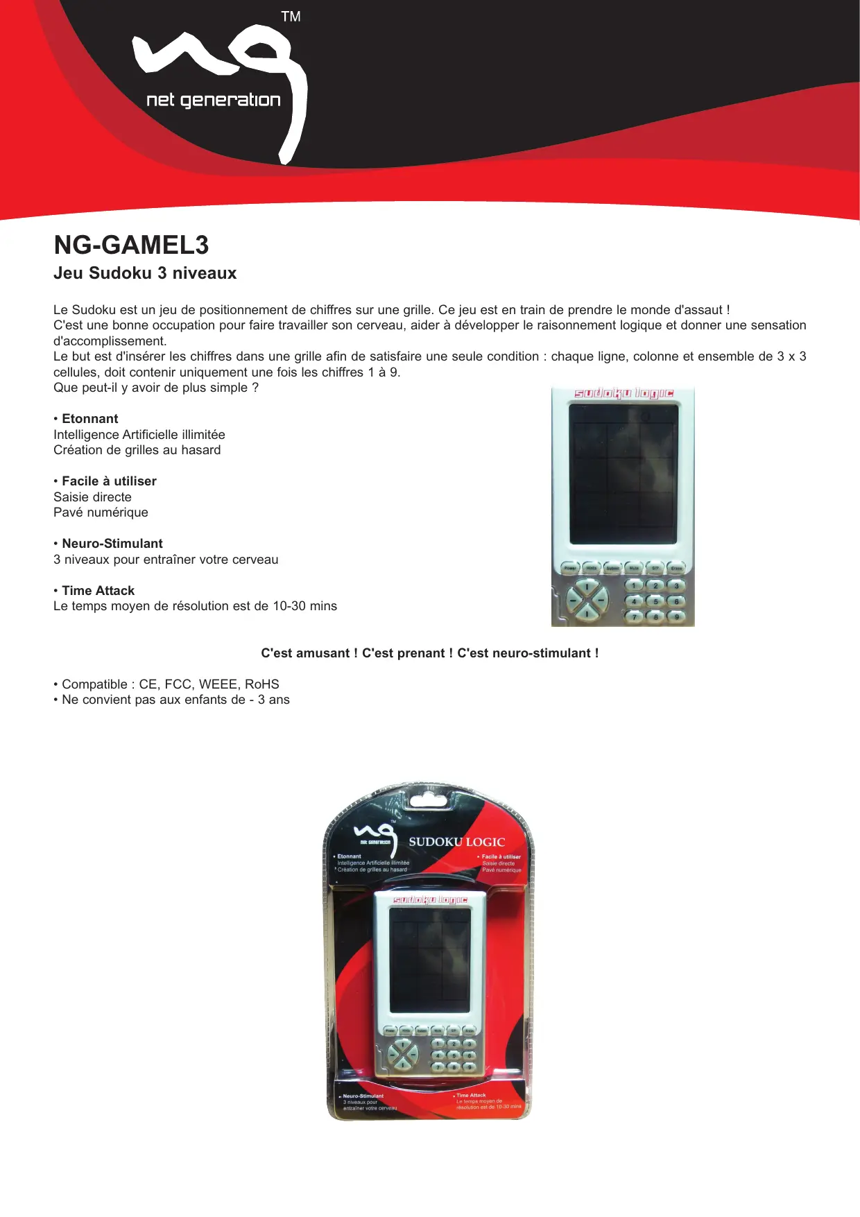 | Type de produit | Console de jeu NET GENERATION NG-GAMEL3 |