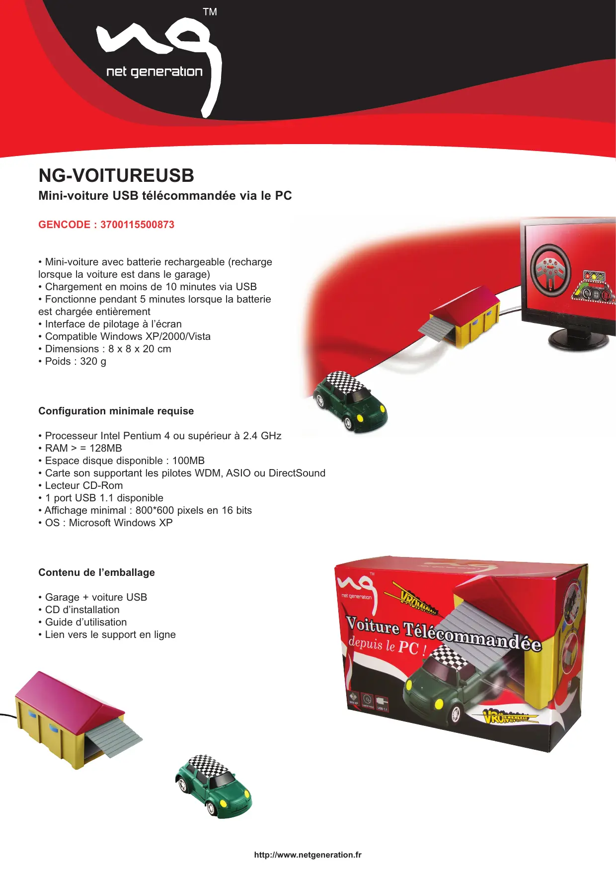 MODE D'EMPLOI NG-VOITUREUSB NET GENERATION