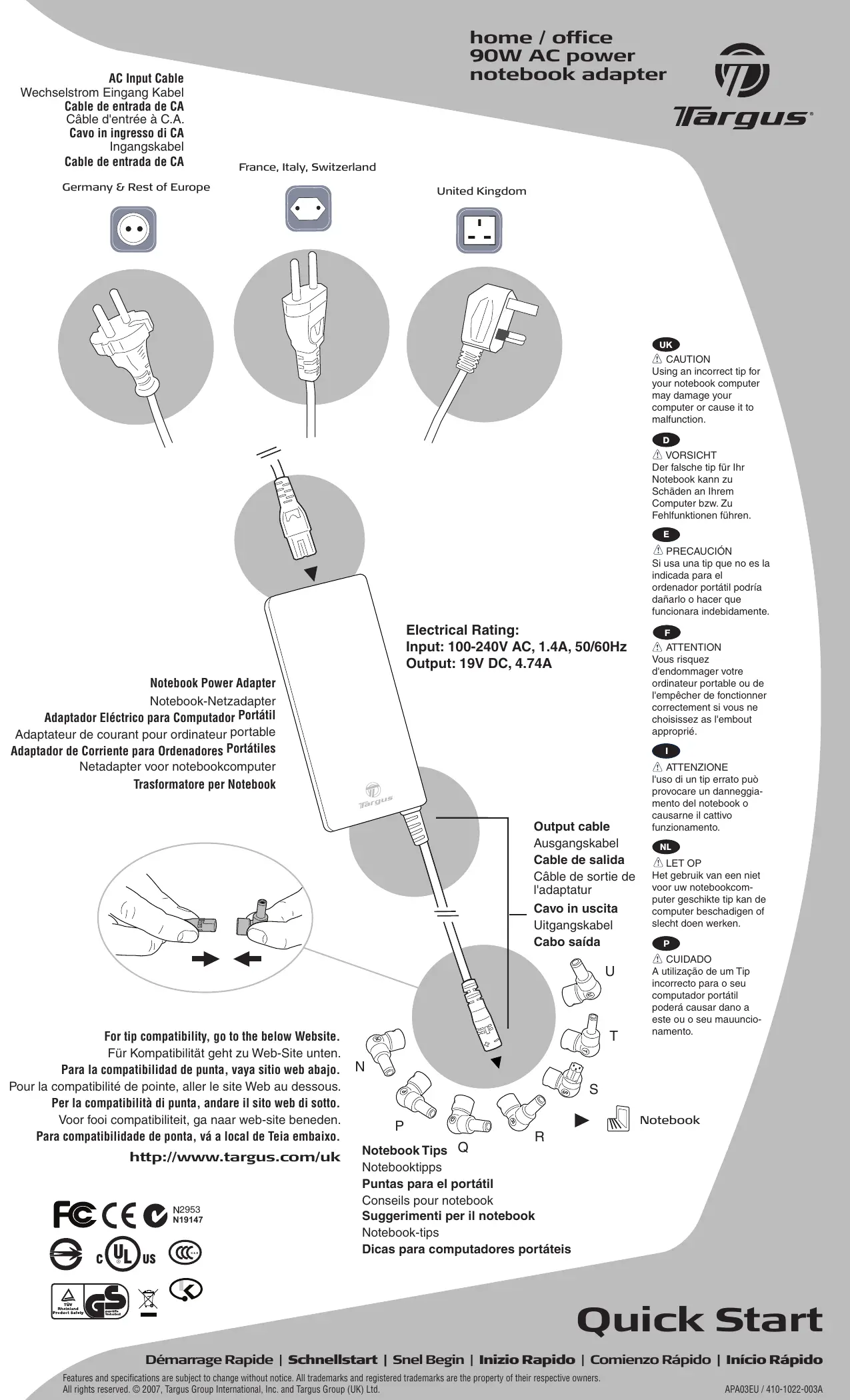 APA03EU - TARGUS - Notice d'utilisation et mode d'emploi gratuit