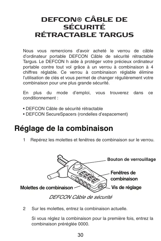 MODE D'EMPLOI NOTEBOOK SECURITY DEFCON TARGUS