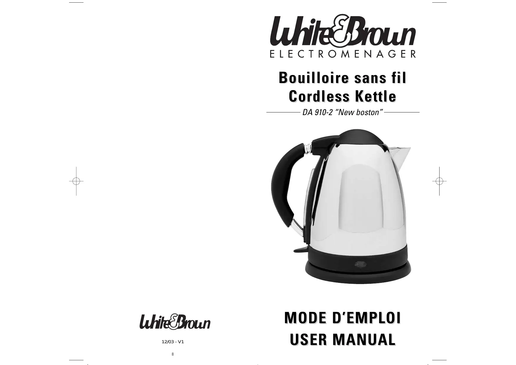 DA 910 - Bouilloire électrique WHITE & BROWN - Notice d'utilisation et mode d'emploi gratuit