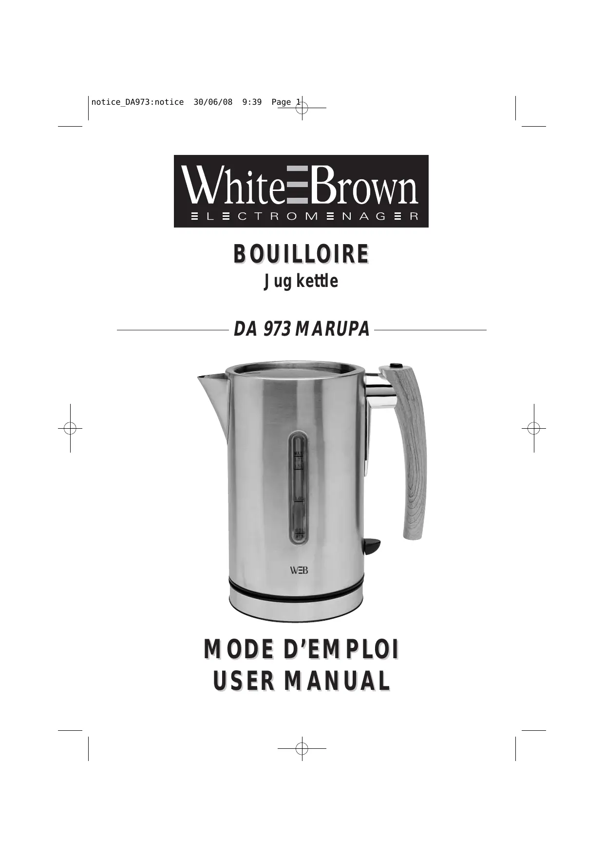 DA 973 - Bouilloire électrique WHITE & BROWN - Notice d'utilisation et mode d'emploi gratuit