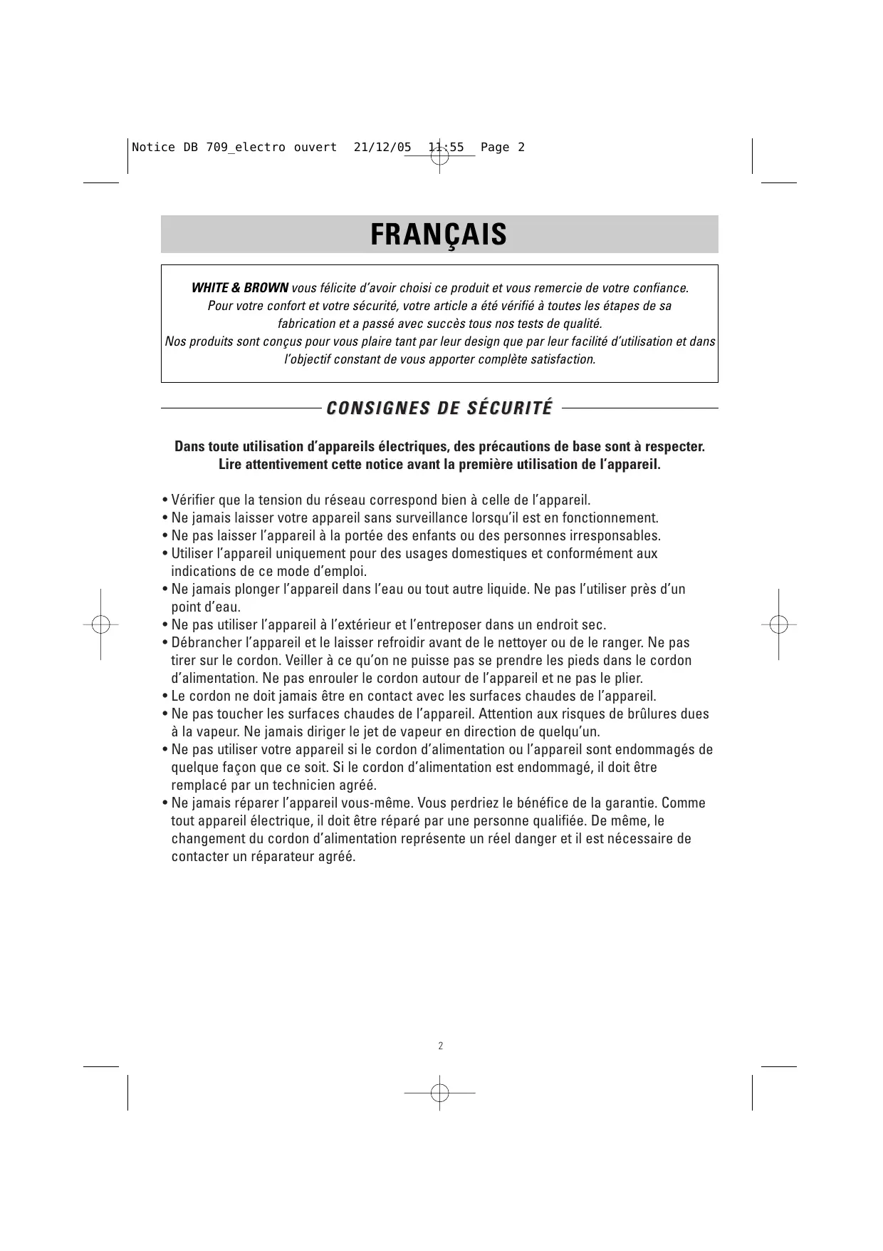 DB 709 - Fer à repasser WHITE & BROWN - Notice d'utilisation et mode d'emploi gratuit