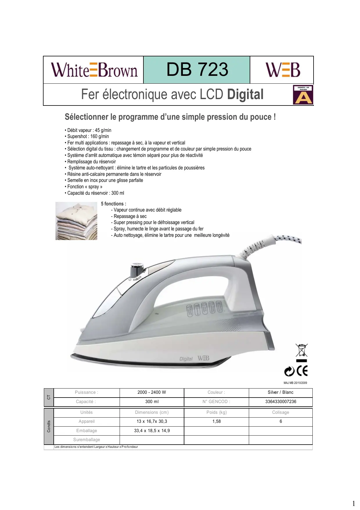 DB 723 - Fer à repasser WHITE & BROWN - Notice d'utilisation et mode d'emploi gratuit