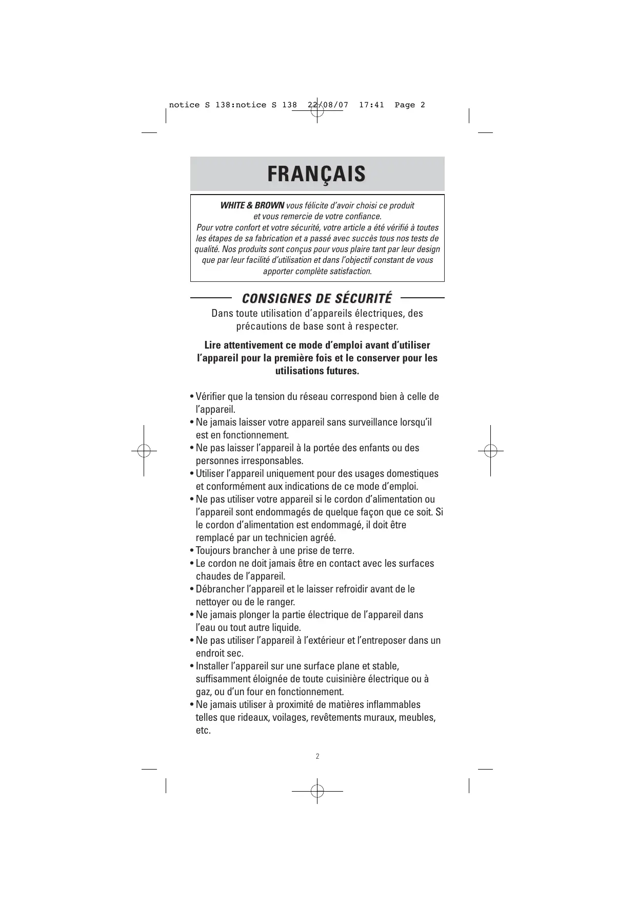 Retrouvez gratuitement la notice de l'appareil S 138 WHITE & BROWN au format PDF.