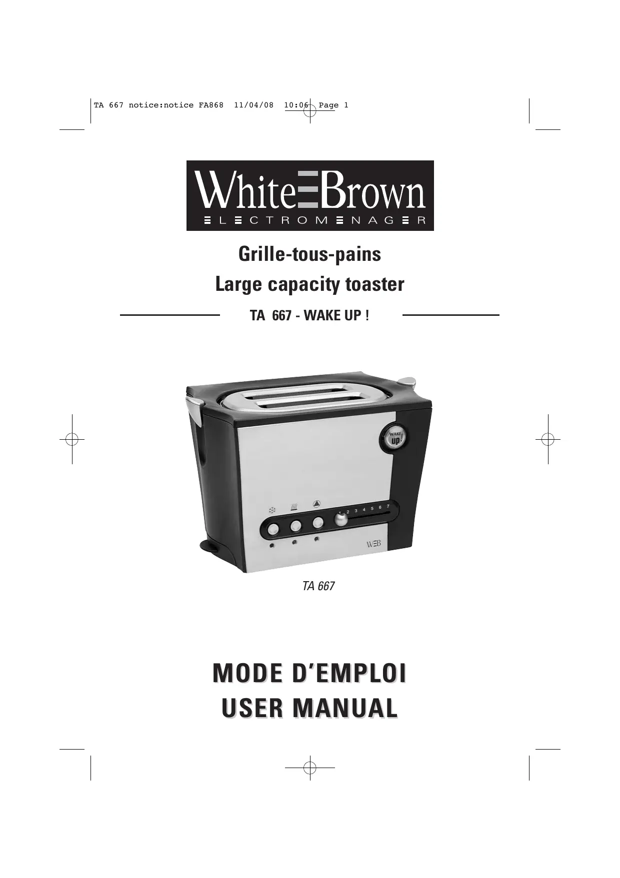TA 667 - Grille pain WHITE & BROWN - Notice d'utilisation et mode d'emploi gratuit