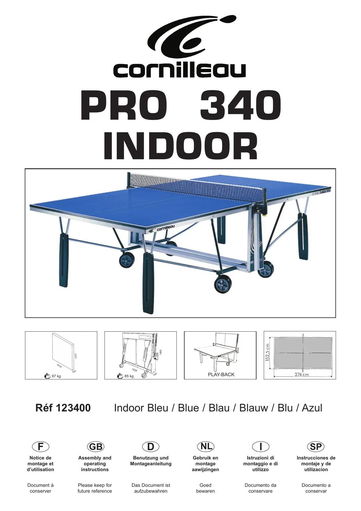 PRO 340 INDOOR - Table de ping-pong CORNILLEAU - Notice d'utilisation et mode d'emploi gratuit