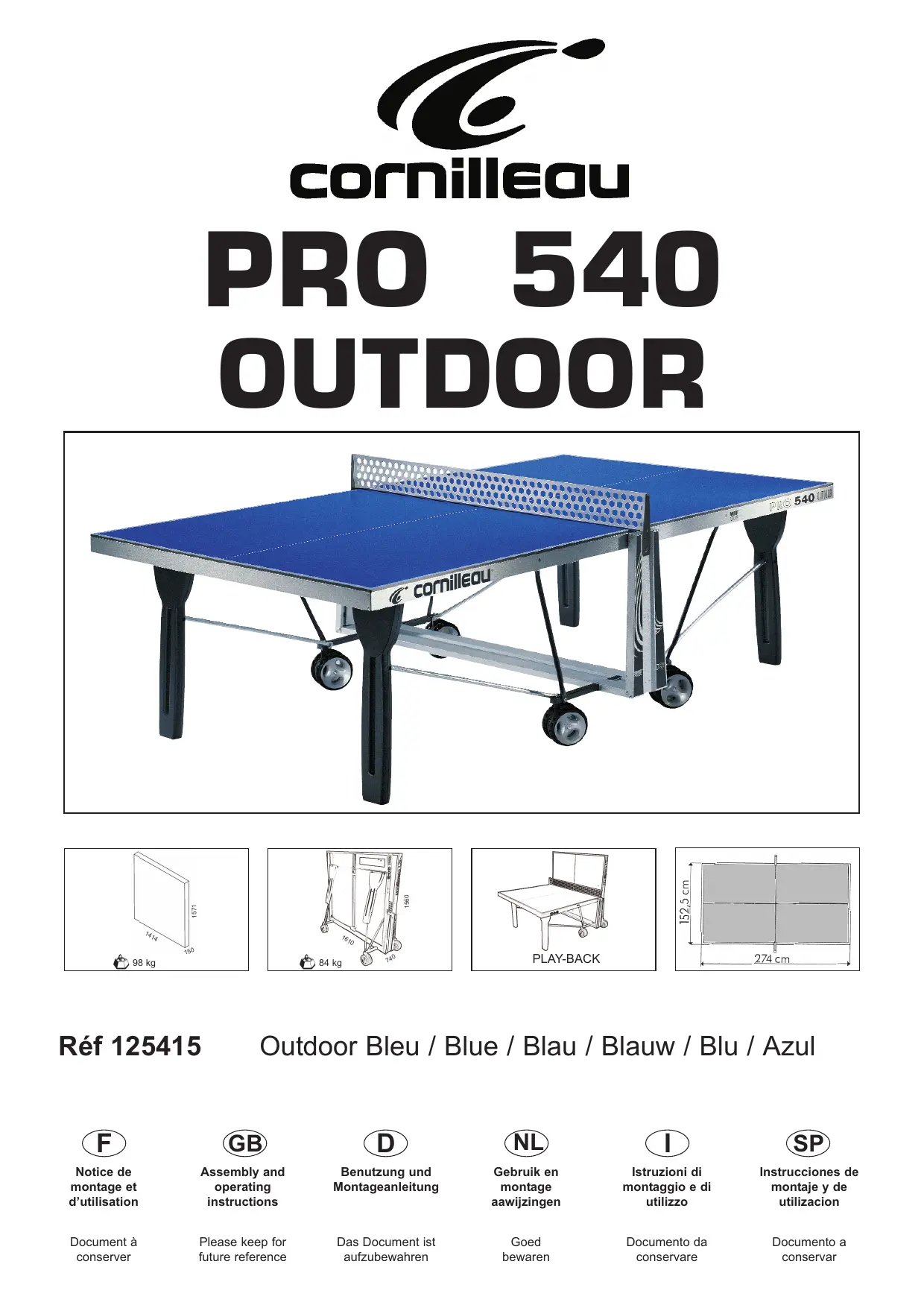 PRO 540 OUTDOOR - Table de ping-pong extérieure CORNILLEAU - Notice d'utilisation et mode d'emploi gratuit