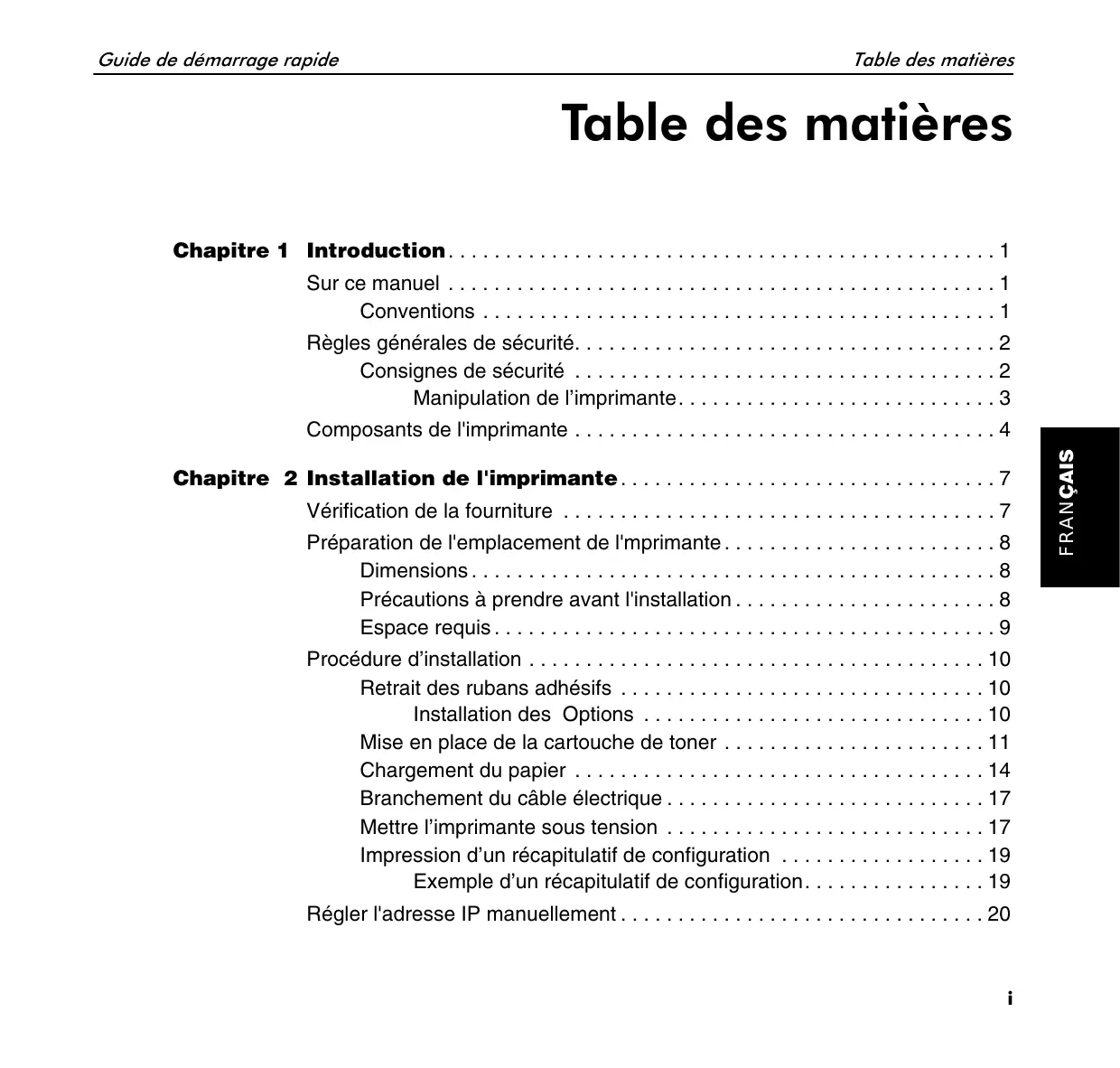 Table des matières Guide de démarrage rapide