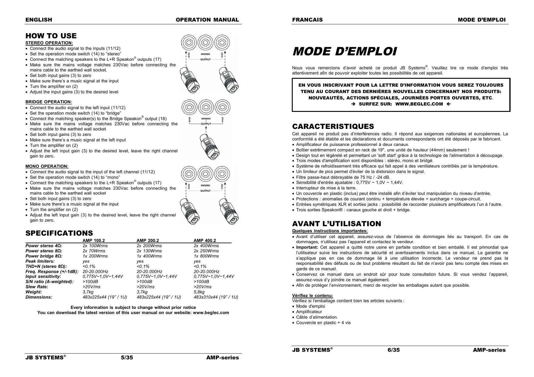 MODE D'EMPLOI AMP 400.2 BEGLEC