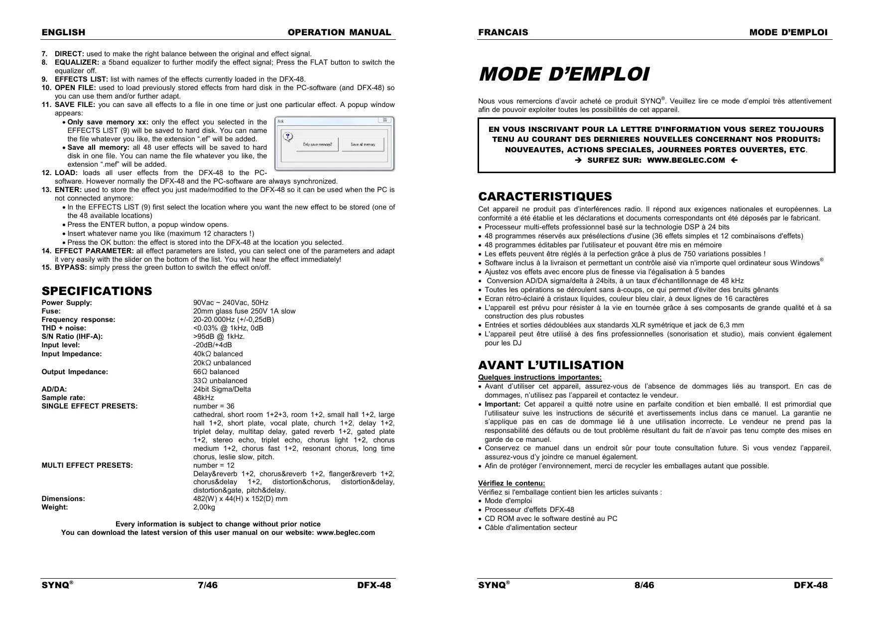 DFX 48 - Processeur audio BEGLEC - Notice d'utilisation et mode d'emploi gratuit