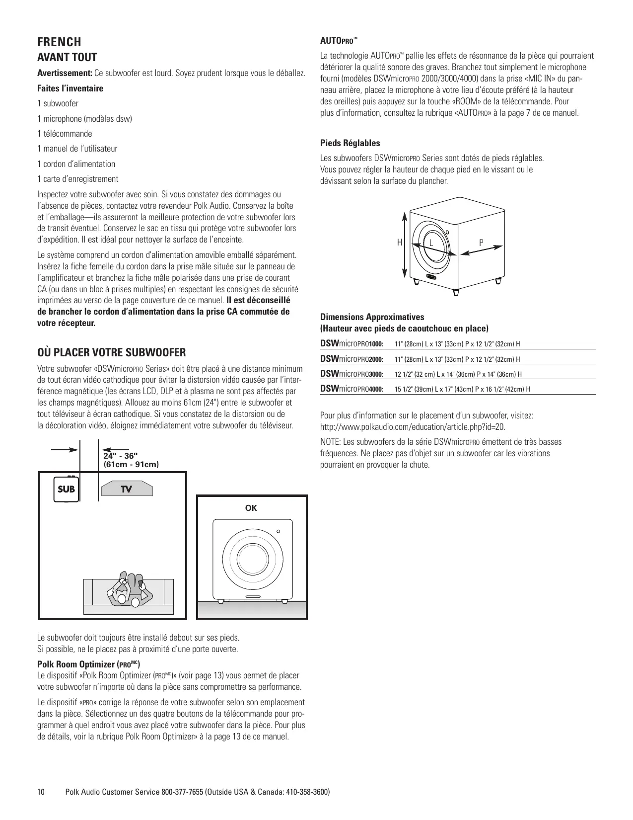 DSW MICROPRO 2000 - Caisson de basses POLK AUDIO - Notice d'utilisation et mode d'emploi gratuit
