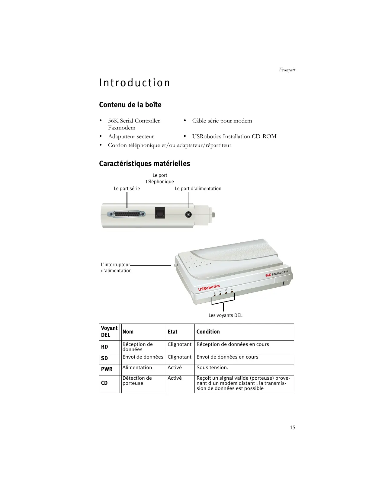 MODE D'EMPLOI 56K SERIAL CONTROLLER FAXMODEM US ROBOTICS