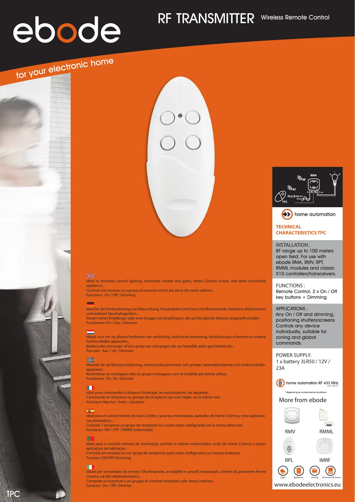 | Applications | Éclairage, volets motorisés, écrans Home Cinema, autres appareils domestiques |
