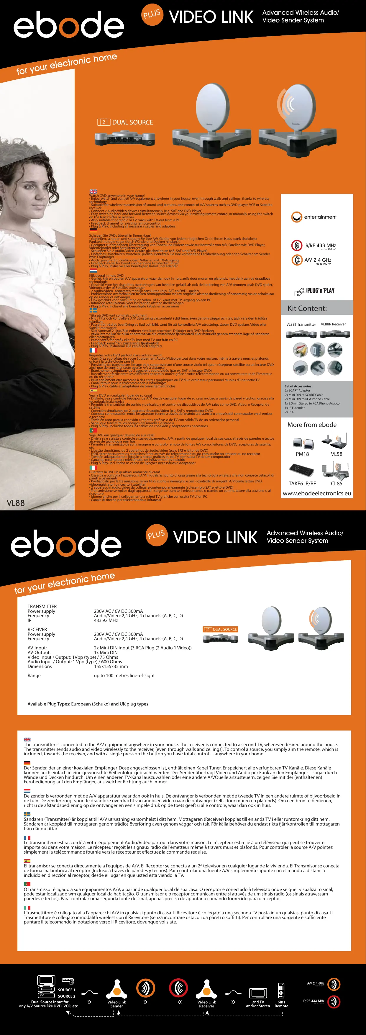 XDOM VL88 - Émetteur-récepteur audio/vidéo sans fil EDOBE - Notice d'utilisation et mode d'emploi gratuit