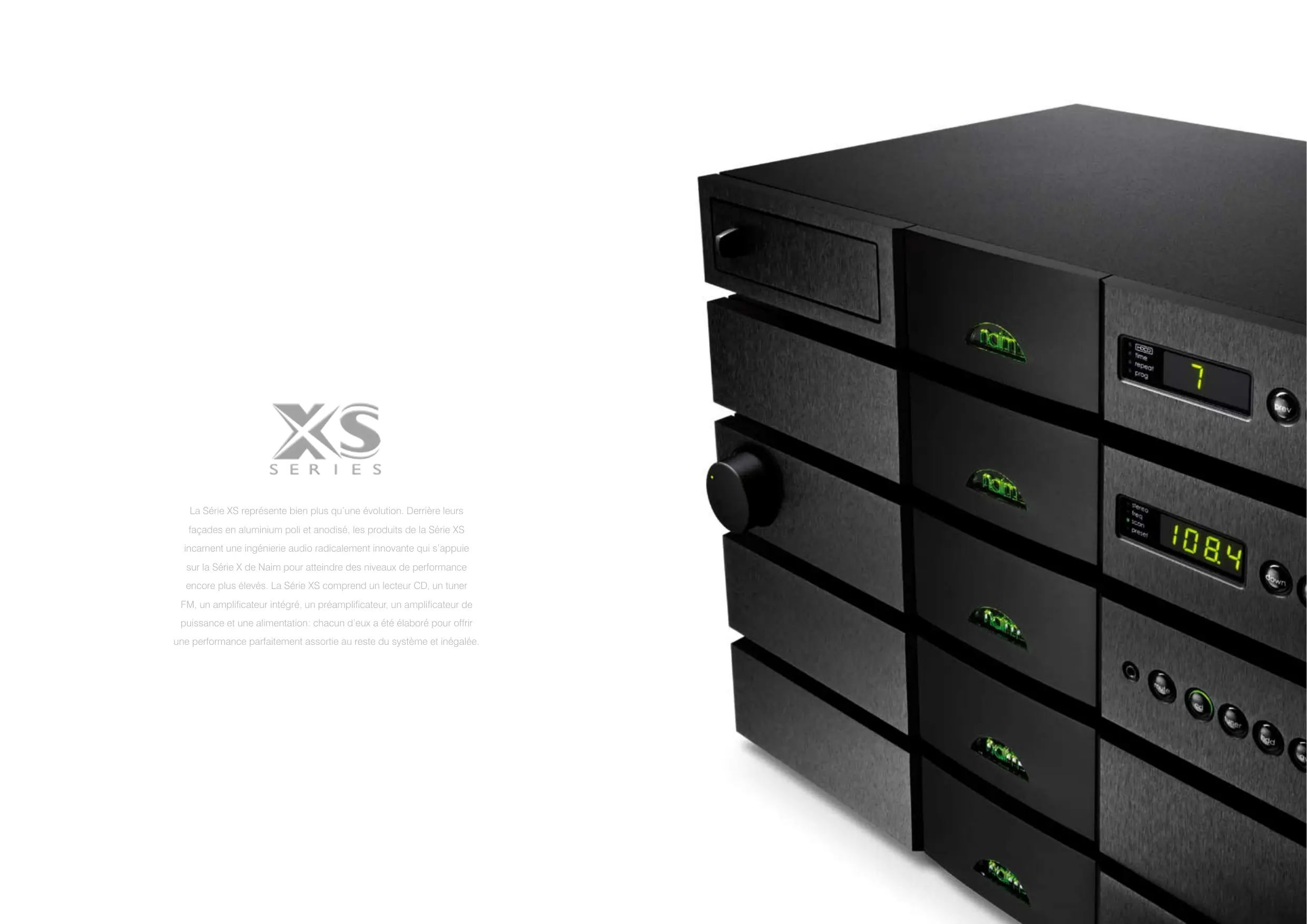 La Série XS représenté bien plus qu'une évolution. Derrière leurs façades en aluminium poli et anodisé, les produits de la Série XS incarnent une ingénieerie audio radicalement innovante qui s'appuie sur la Série X de Naim pour atteindre des niveaux de performance encore plus élevés. La Série XS comprend un lecteur CD, un tuner FM, un amplificateur intégré, un préamplificateur, un amplificateur de puissance et une alimentation: chacun d'eux a étéélaboré pour offrir ne performance parfaitement assorted au reste du système et inégalée.