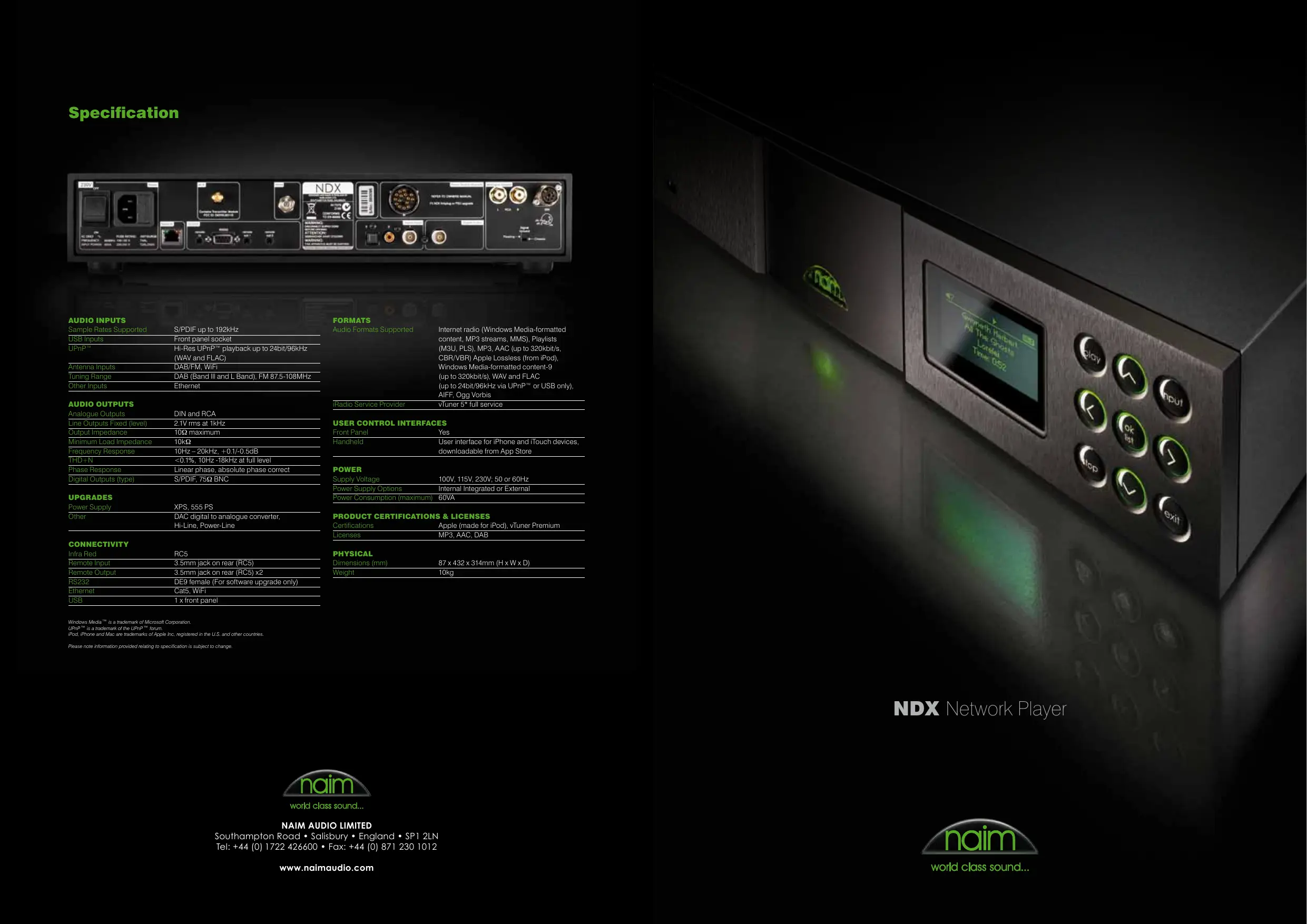 Téléchargez la notice de votre Lecteur audio réseau au format PDF gratuitement ! Retrouvez votre notice NDX - NAIM1 et reprennez votre appareil électronique en main. Sur cette page sont publiés tous les documents nécessaires à l'utilisation de votre appareil NDX de la marque NAIM1.