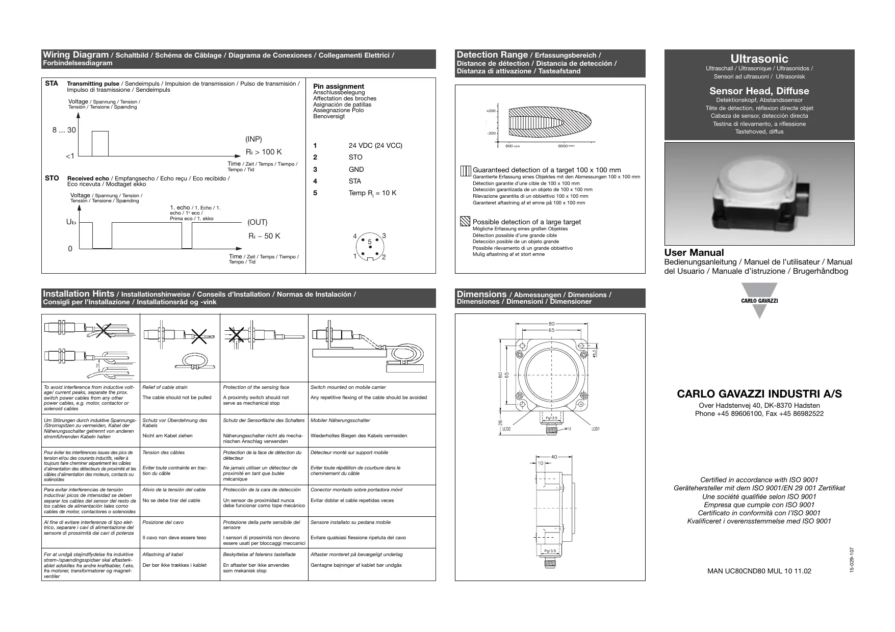 UC80CND80 - Capteur ultrasonique CARLO GAVAZZI - Notice d'utilisation et mode d'emploi gratuit
