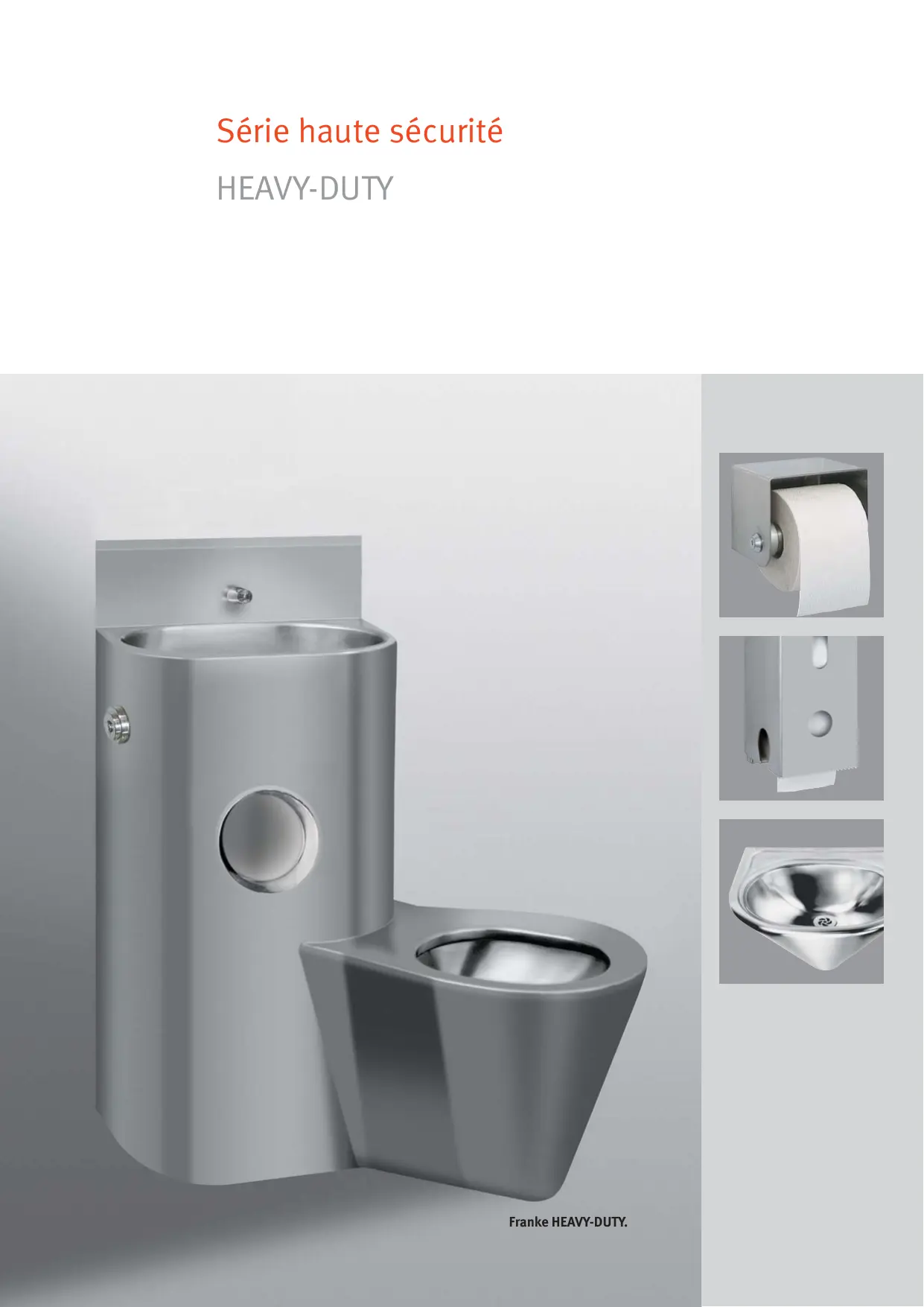 La gamme de produits Franke HEAVY-DUTY pour les domaines à très forte fréquentation: WC publics et aires d'autoroute, prisons, postes de police, établissements spécialisés, terrains de camping etc.