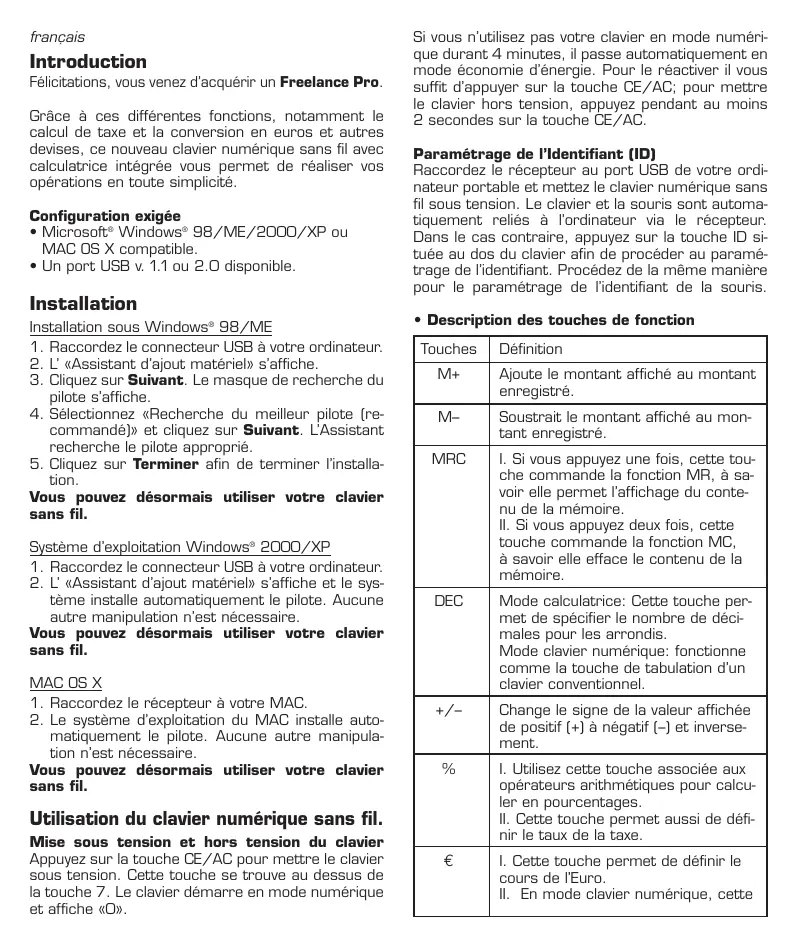 MODE D'EMPLOI FREELANCE PRO DICOTA